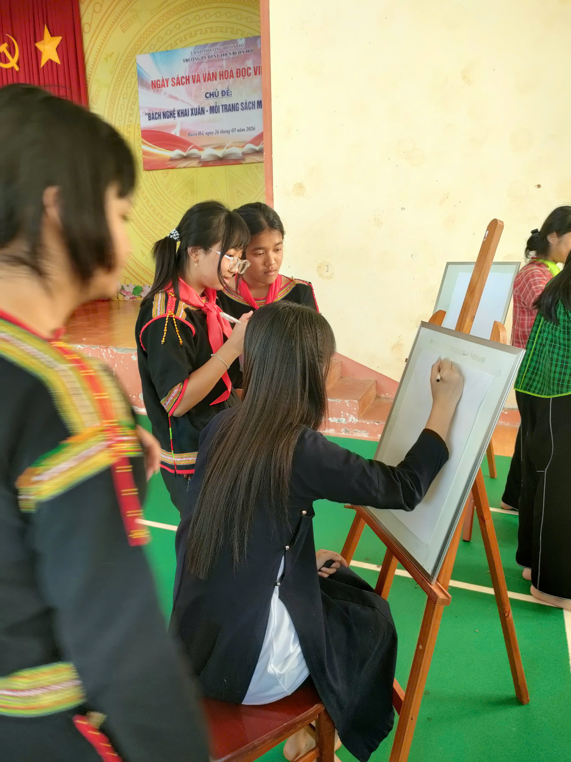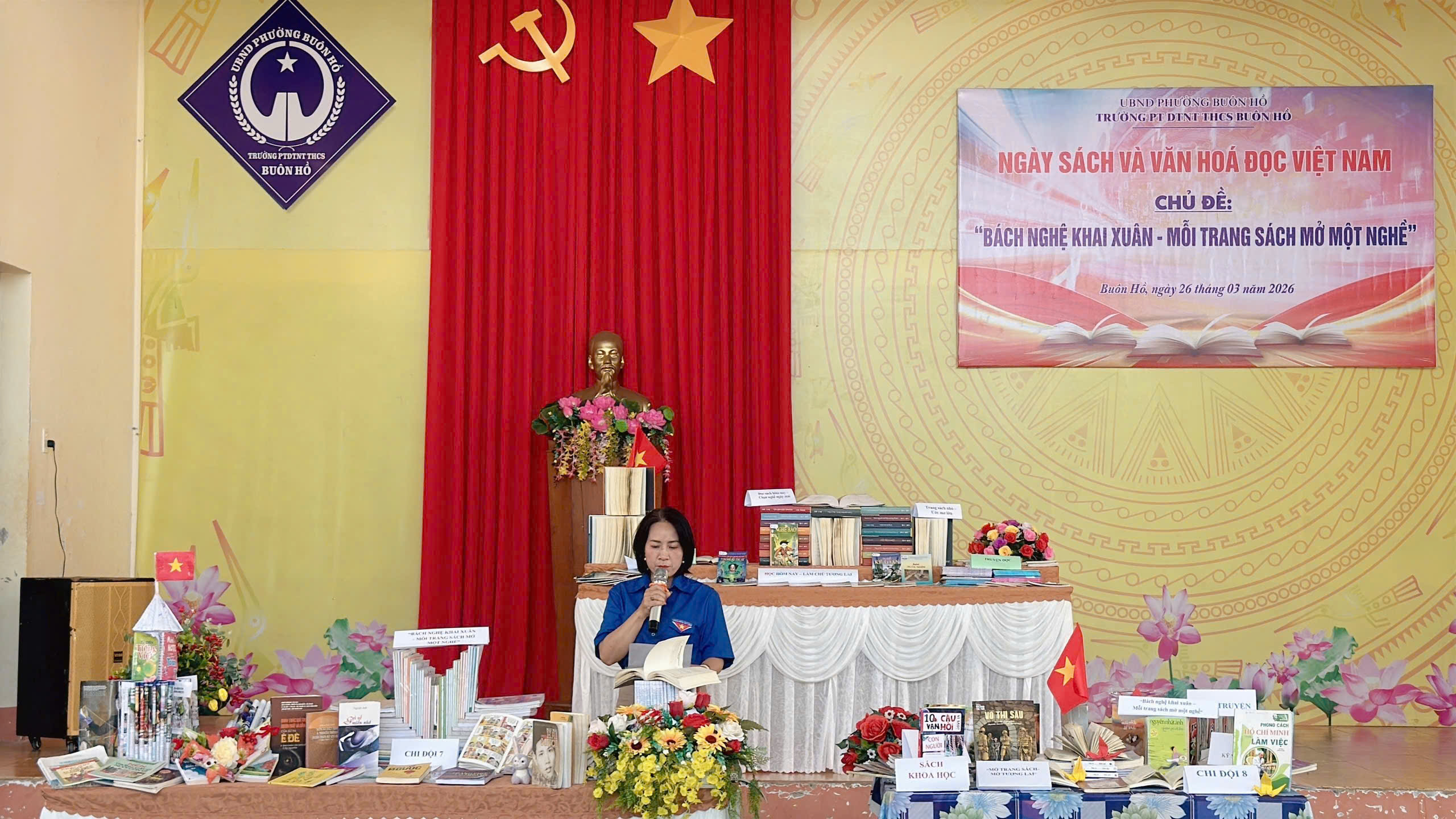 Thư viện phối hợp Liên đội trường PTDTNT THCS Buôn Hồ tổ chức ngày sách và văn hóa đọc Việt Nam 21/4 với chủ đề “Bách nghệ khai xuân – Mỗi trang sách mở một nghê”